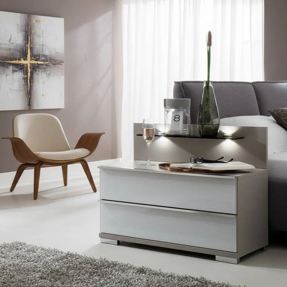 - Ausgezeichnetes Nachtkommoden Set in Hell Grau und Weiß