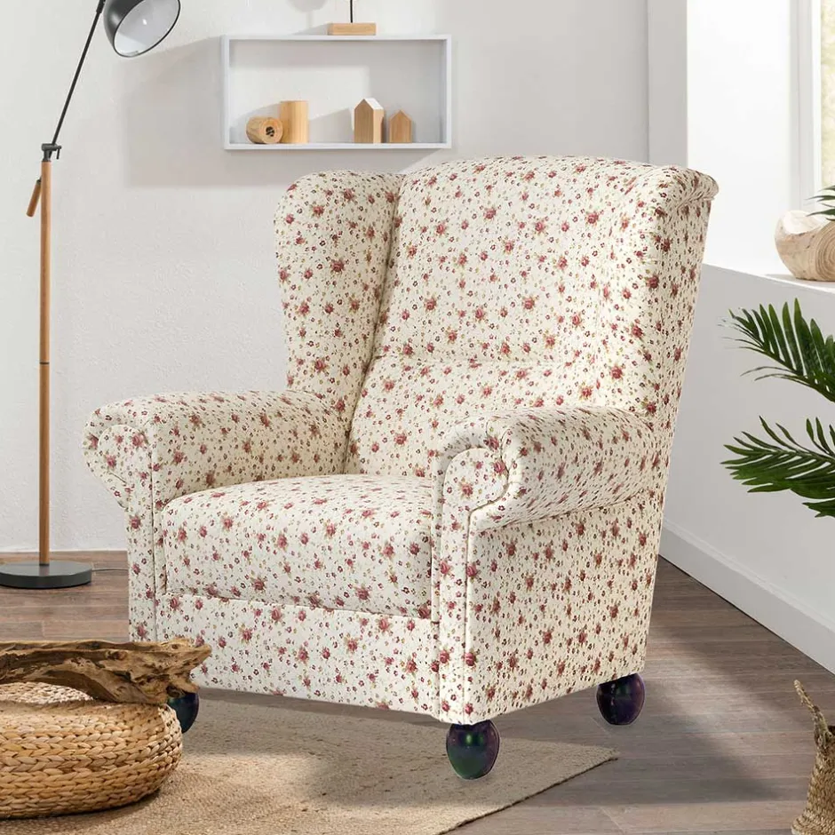 - Komfortabler Sessel in Beige, Bunt und Nussbaumfarben