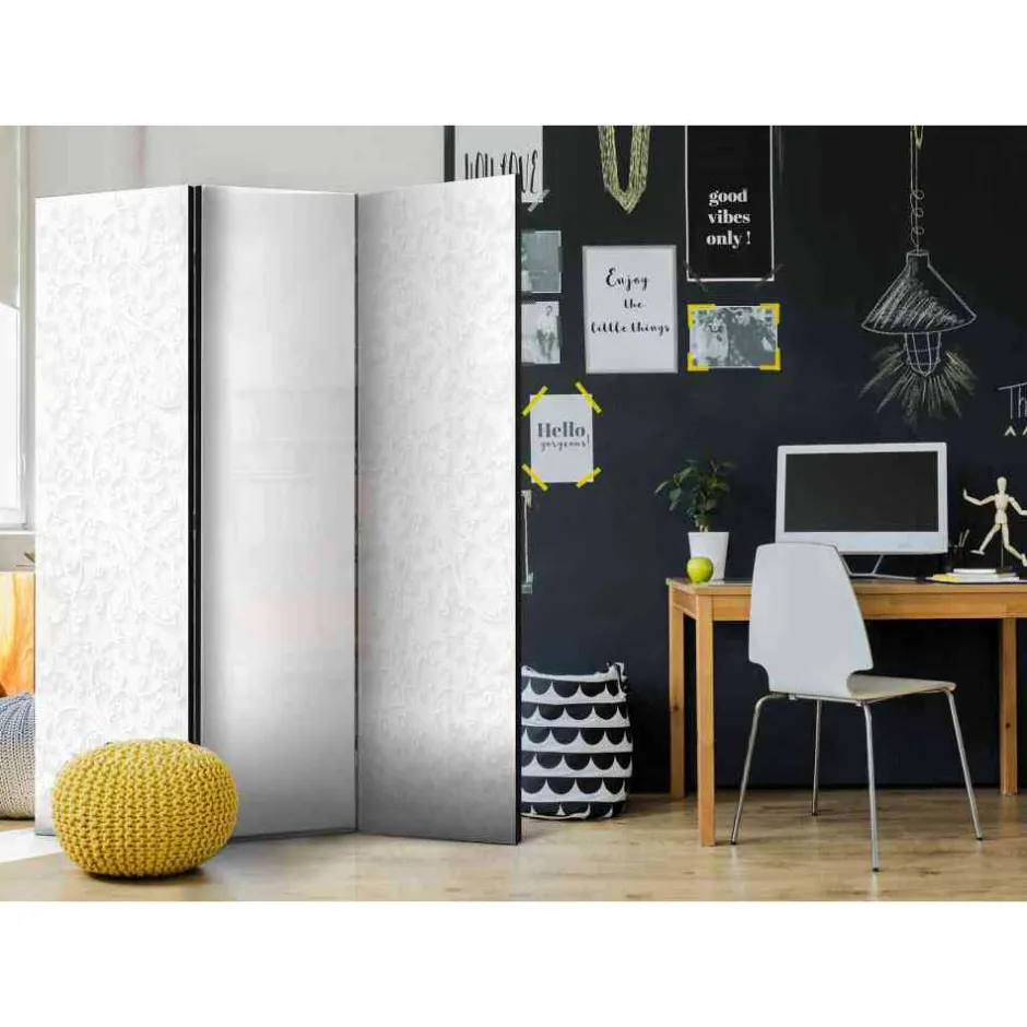 - Origineller Paravent in Weiß und Hell Grau