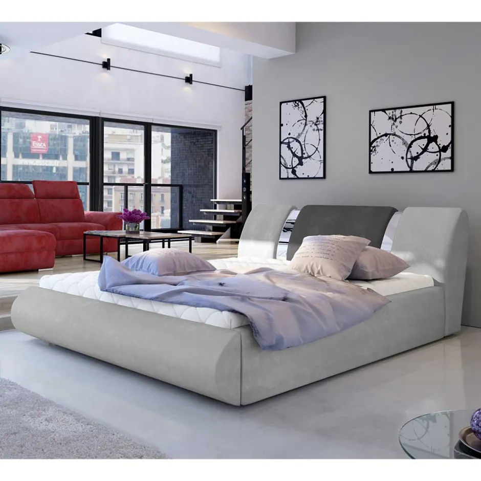 - Attraktives Polsterbett in Hellgrau und Dunkelgrau