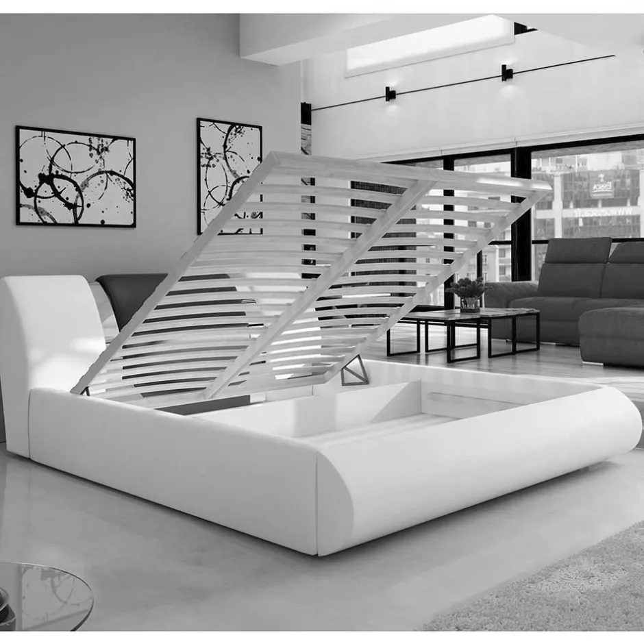 - Ein geräumiger Bettkasten, der in zwei Teile unterteilt ist, Öffnung mit Lift Funktion an der Vorderseite