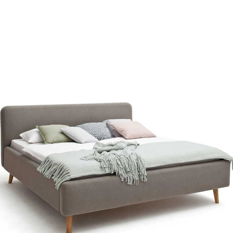 - Formschönes Polsterbett in Taupe und Eichefarben