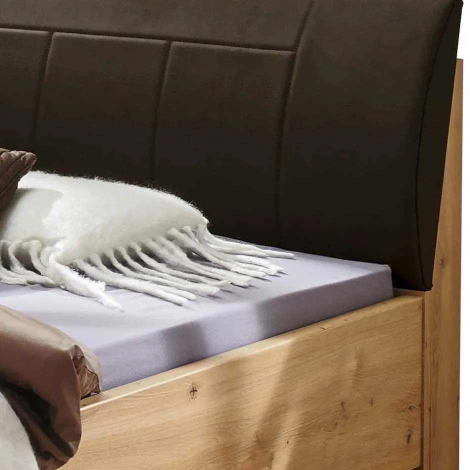 - Komfortables Bett in Eiche Bianco und Dunkelbraun