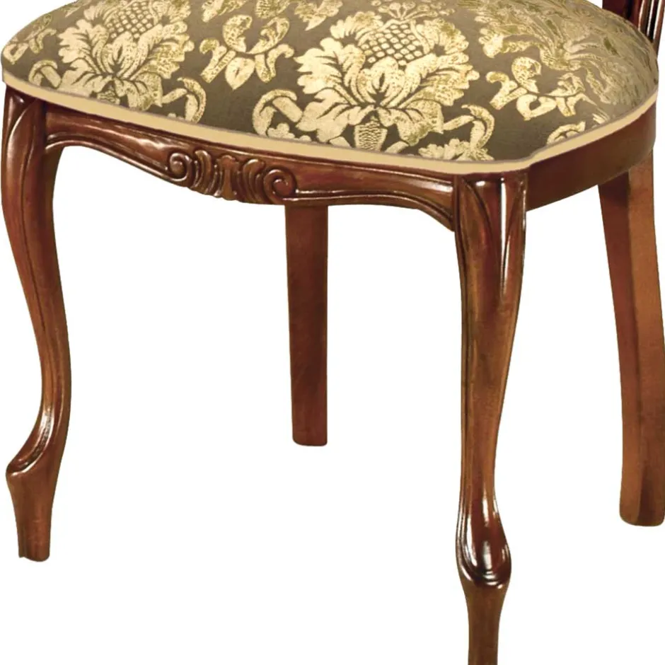 - Prachtvoller Polsterstuhl in Beige, Gold, und Nussbaumfarben