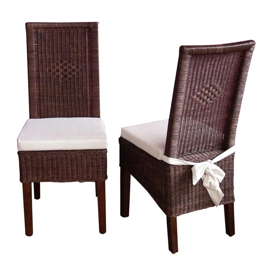 - Traditionelles Rattan Stuhl Set in Braun