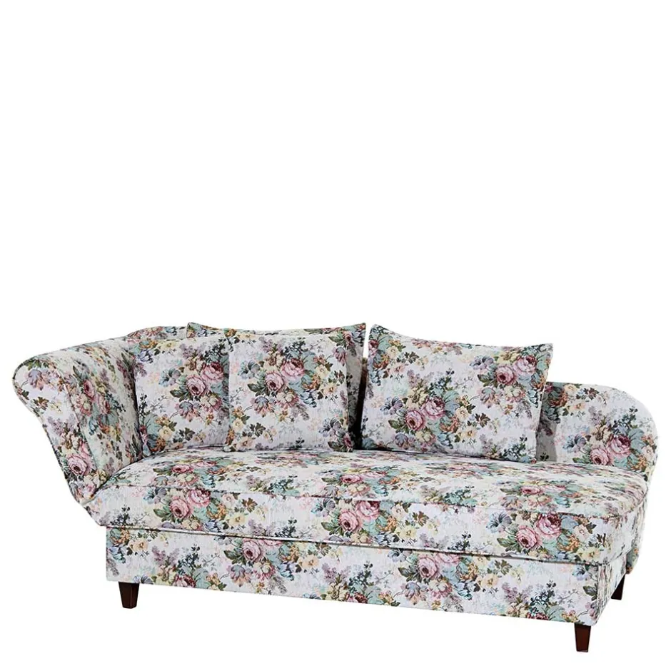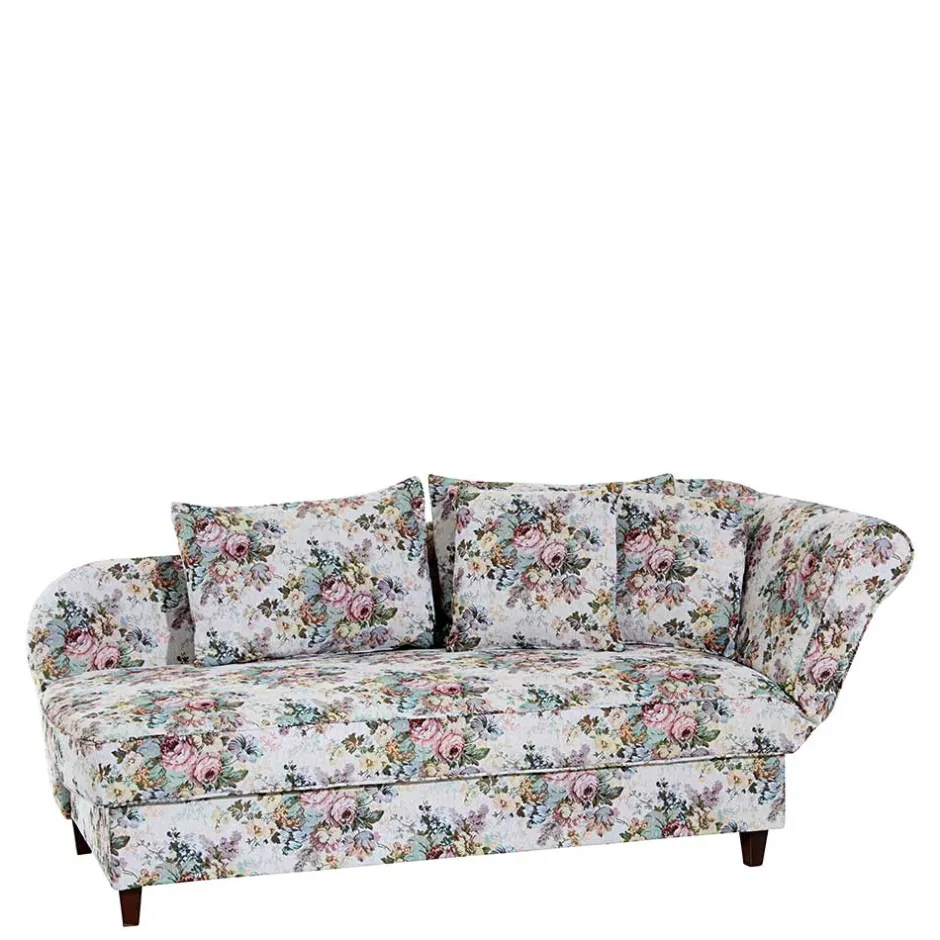 - Romantische Recamiere in Bunt geblümt und Nussbaumfarben