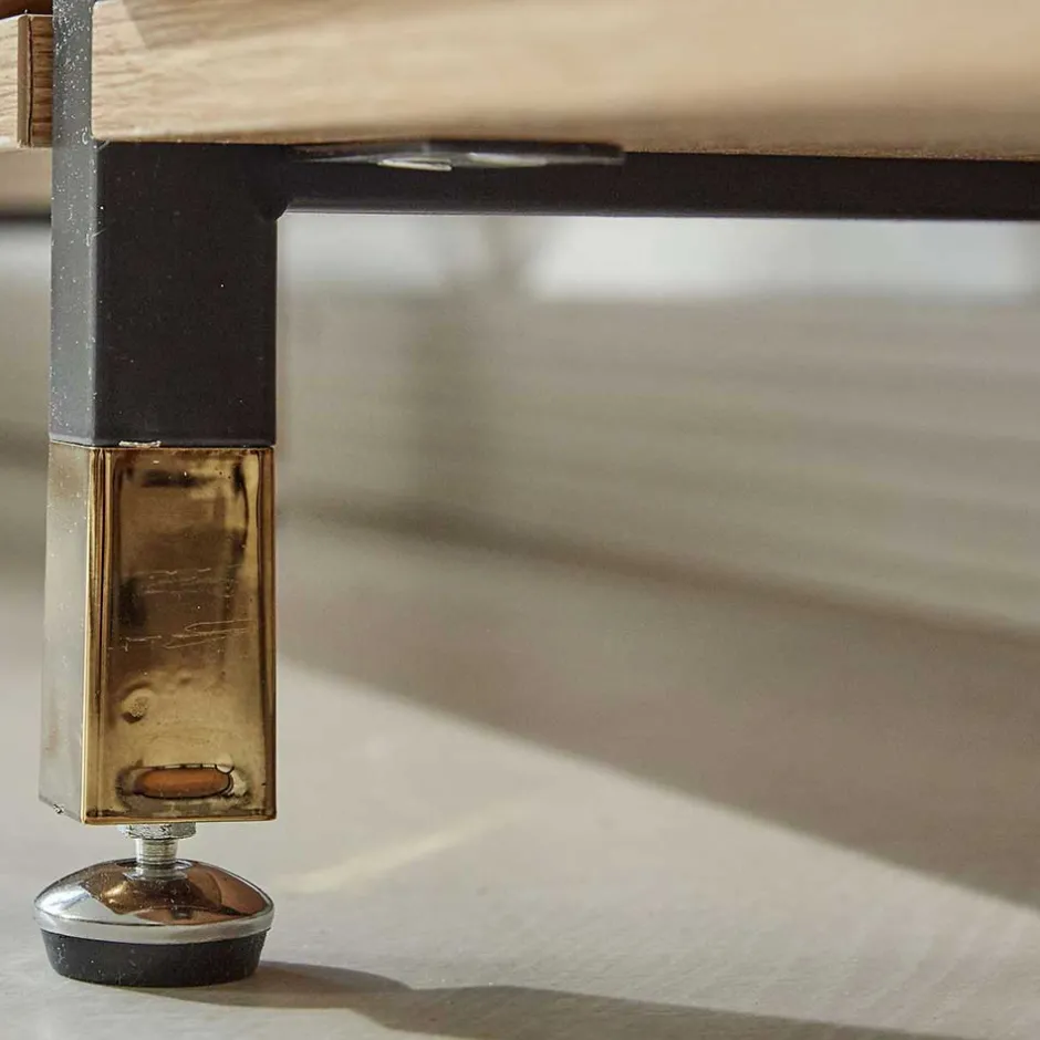 - Solider Metallrahmen mit vier höhenausgleichbaren, goldfarbigen Füßen