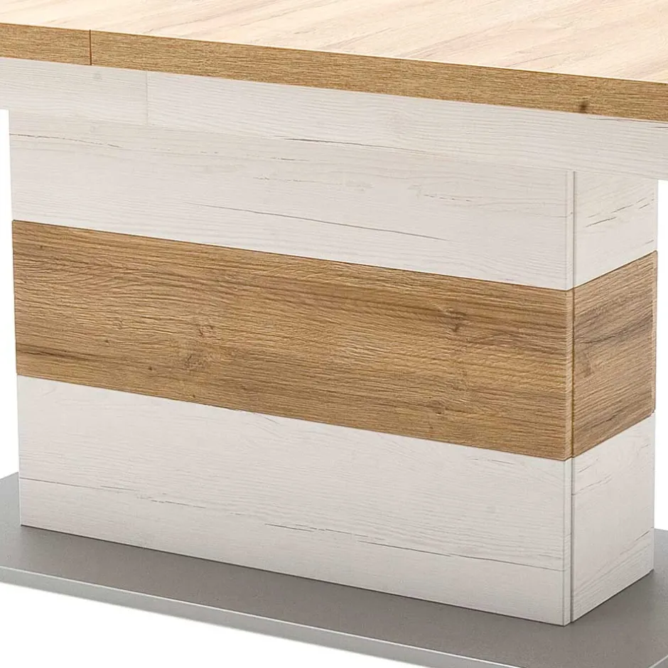 - Solider Esstisch in Pinie Weiß und Eichefarben