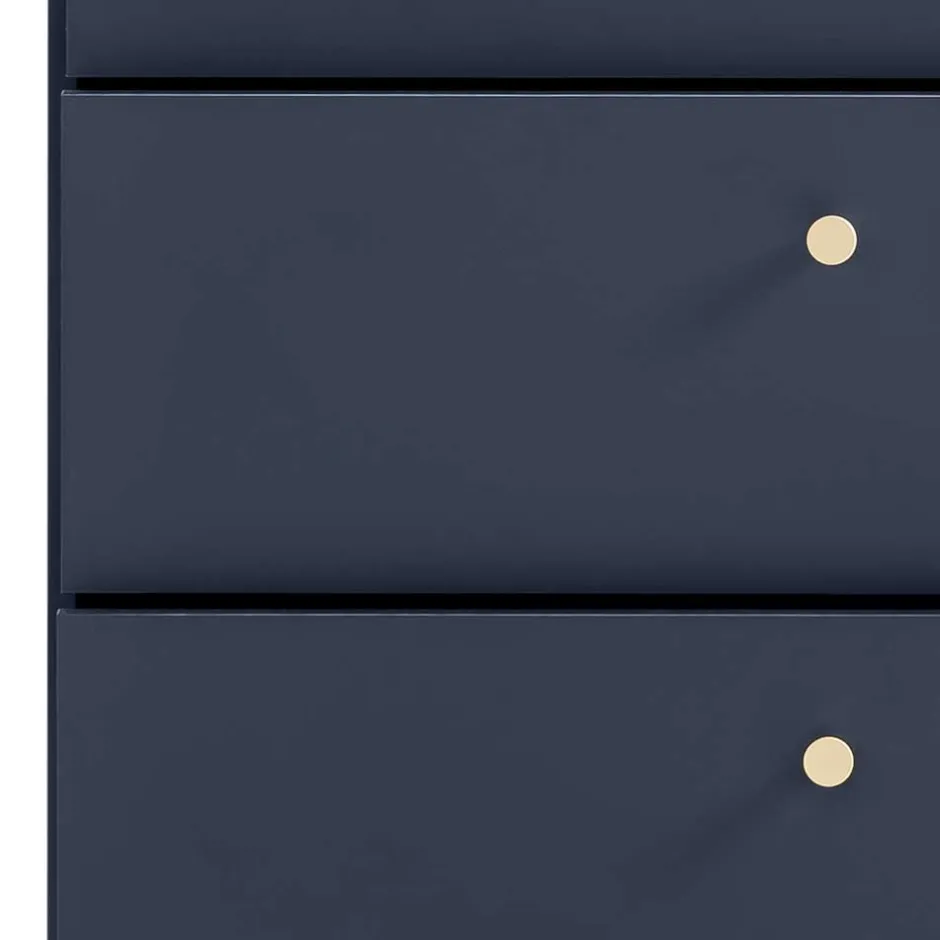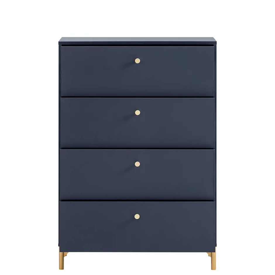 - Trendige Schlafzimmermöbel in Dunkelblau und Goldfarben