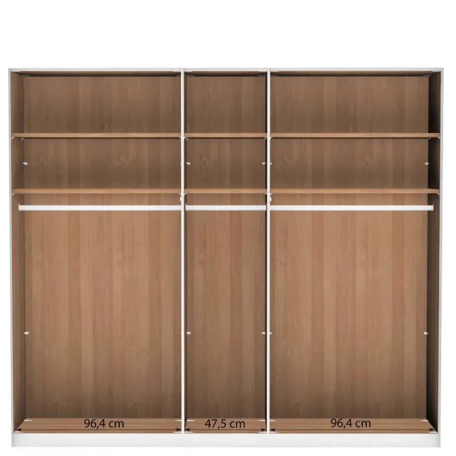 - Mit drei festen Kleiderstangen und sechs Einlegeböden