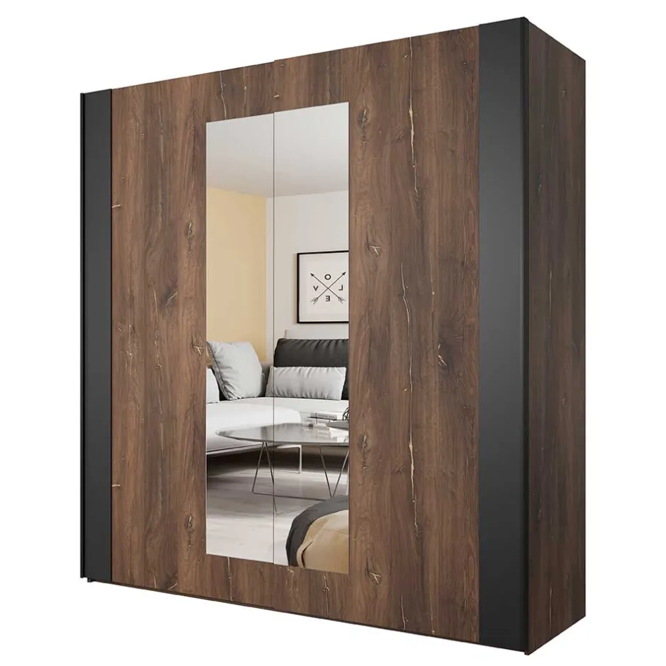 - Trendiger Kleiderschrank in Eiche dunkel, Kupferfarben und Schwarz