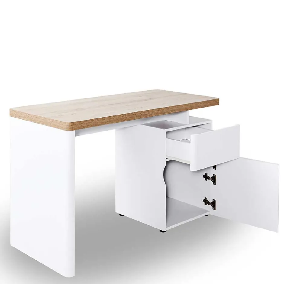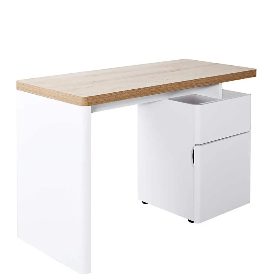 - Platzsparender Schreibtisch in Eichefarben und Weiß