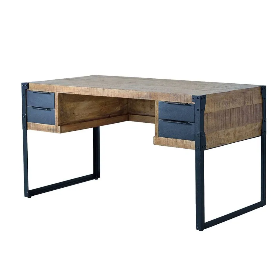 - Rustikaler Schreibtisch in Mangoholz Naturfarben und Schwarz