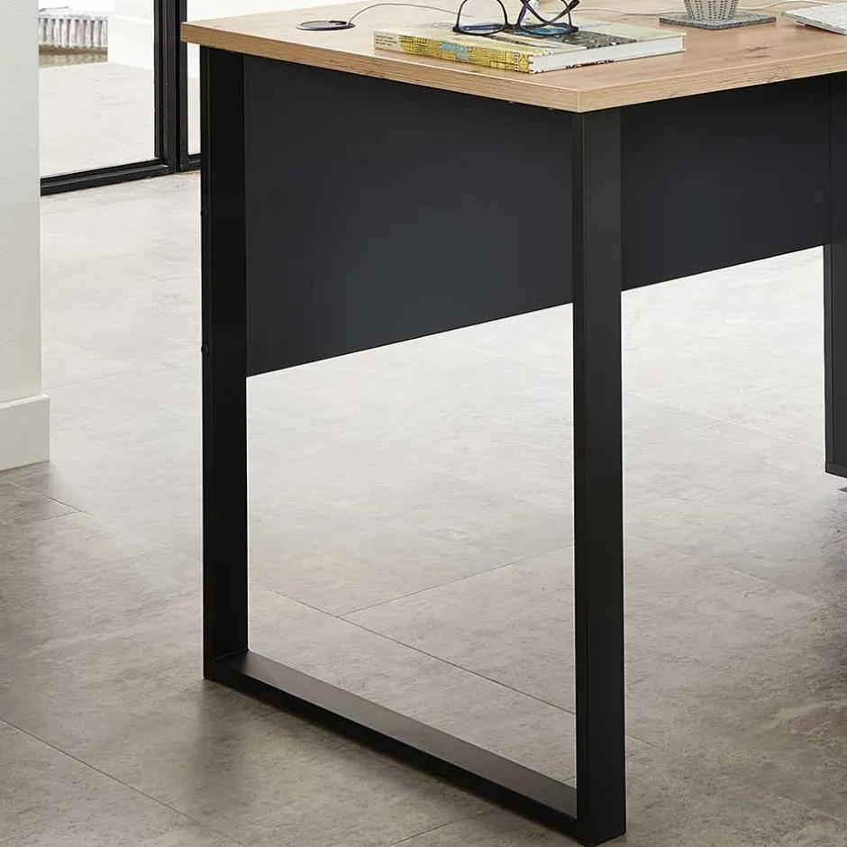 - Topaktueller Schreibtisch in Wildeichefarben, Dunkelgrau und Schwarz