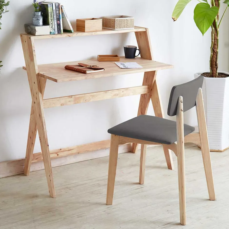 - Praktische Schreibtisch Kombination in Gummibaumholz Naturfarben und Anthrazit