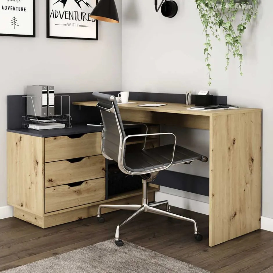 - Komfortabler Eckschreibtisch in Wildeichefarben und Anthrazit