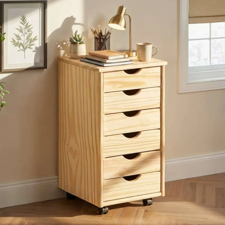 - Praktischer Rollcontainer in Kieferfarben