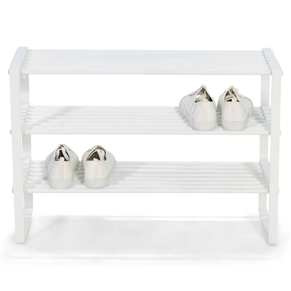 - Modern und stilvoll präsentiert sich das Schuhregal in klassischem Weiß
