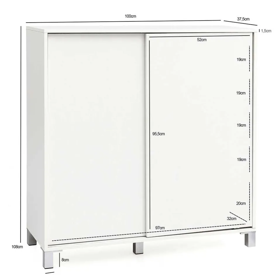 - Innenmaße Fächer (BxHxT): je ca. 97x19x32 cm