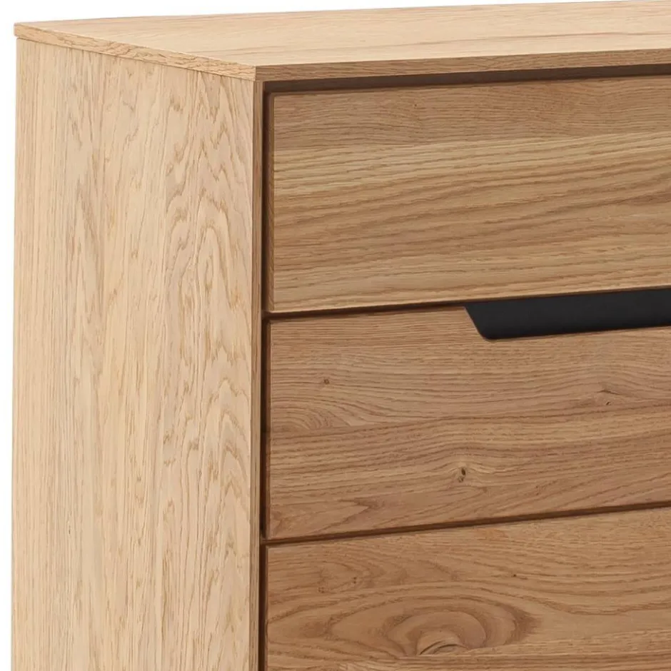 - Massivholz geölt, Holzwerkstoff außen echtholzfurniert und geölt, innen in Holzoptik foliert