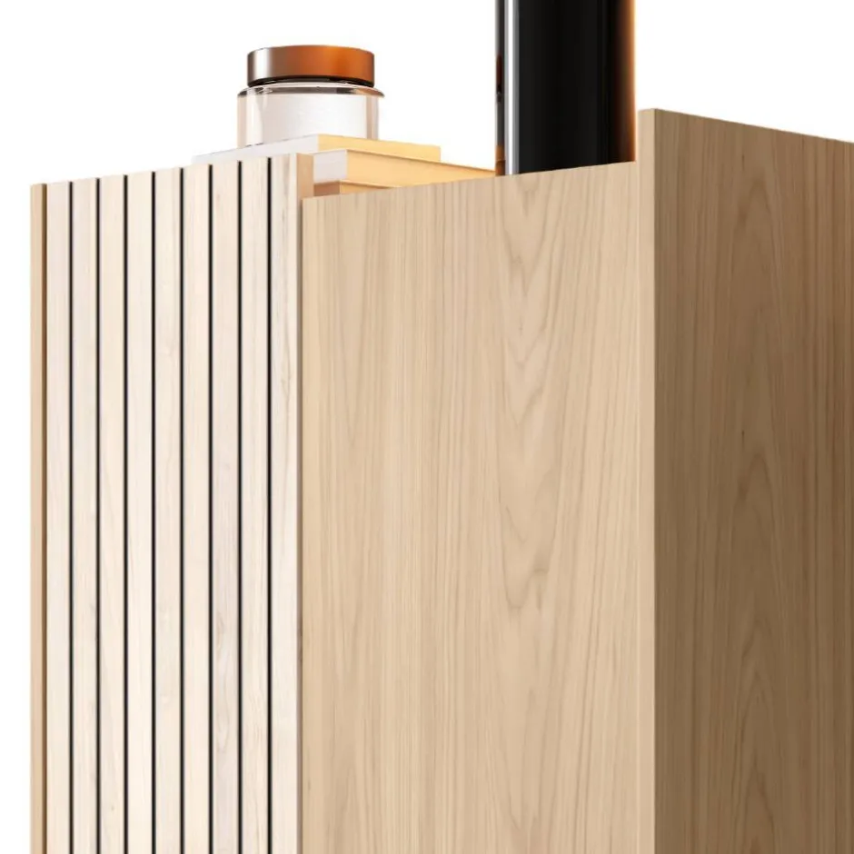 - Oberflächen in Holzoptik melaminbeschichtet, Front teils geriffelt in Paneeloptik gestaltet