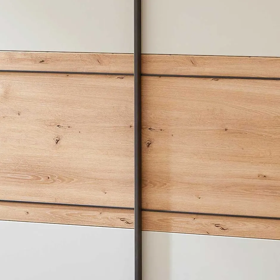 - Anspruchsvoller Kleiderschrank in Beige und Eiche Bianco