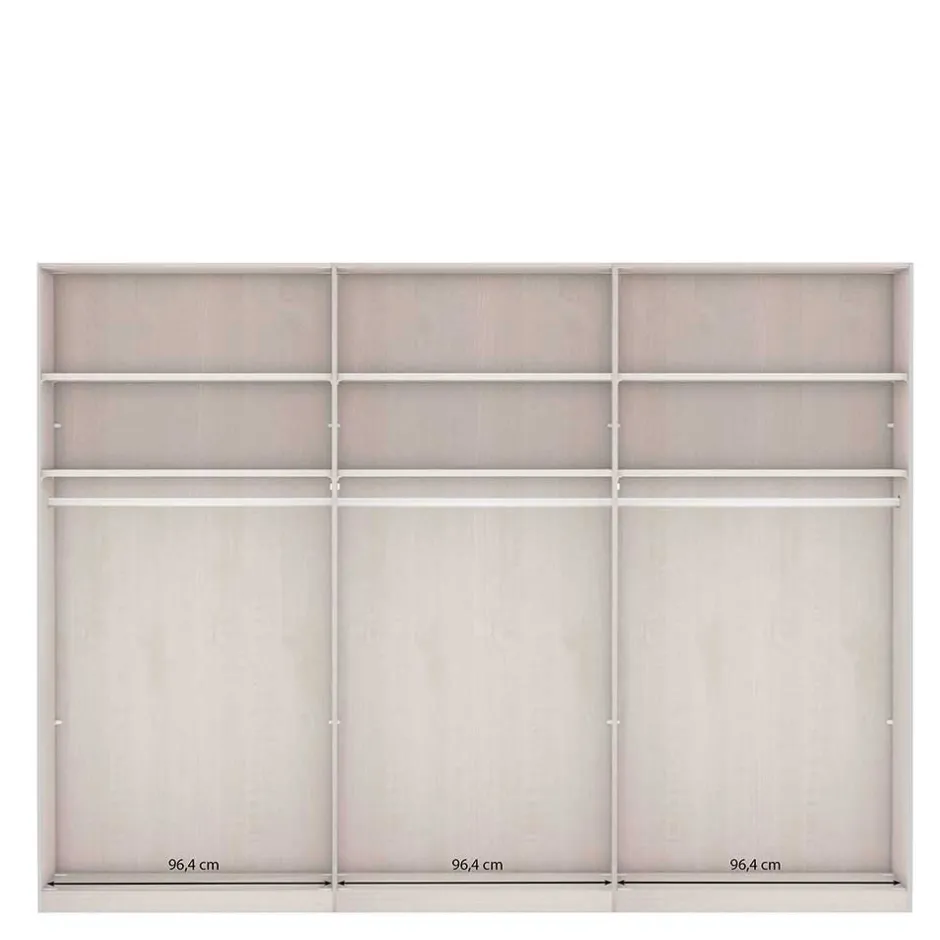 - Zwei platzsparende Schwebetüren, dahinter drei Facheinheiten, Breite innen jeweils 96,4 cm
