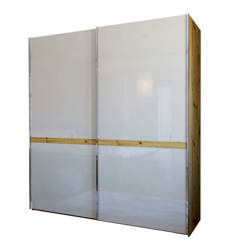 - Oberfläche der Front mit Glas beschichtet, Korpus und Querriegel-Leiste in Holzoptik Eiche Bianco foliert