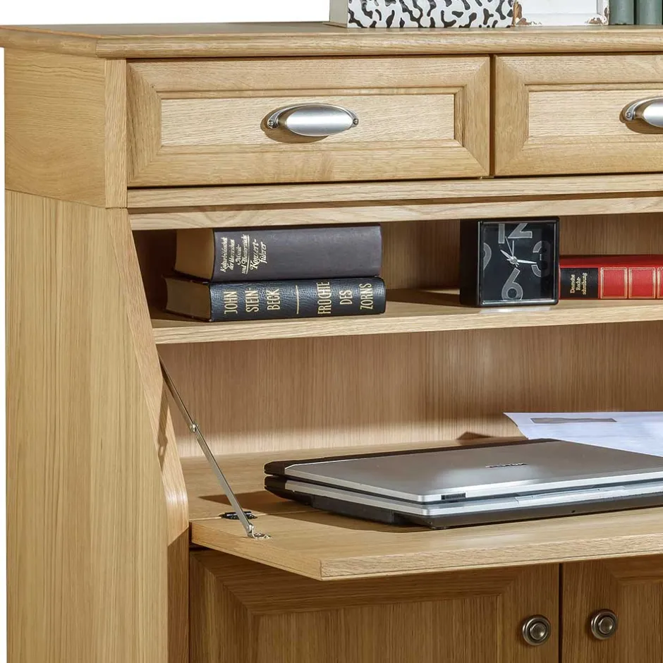 - Schreibklappe mit stabilen Metallbeschlägen, geräumige Inneneinteilung mit einem Einlegeboden, Höhe der Platte ca. 73,5 cm