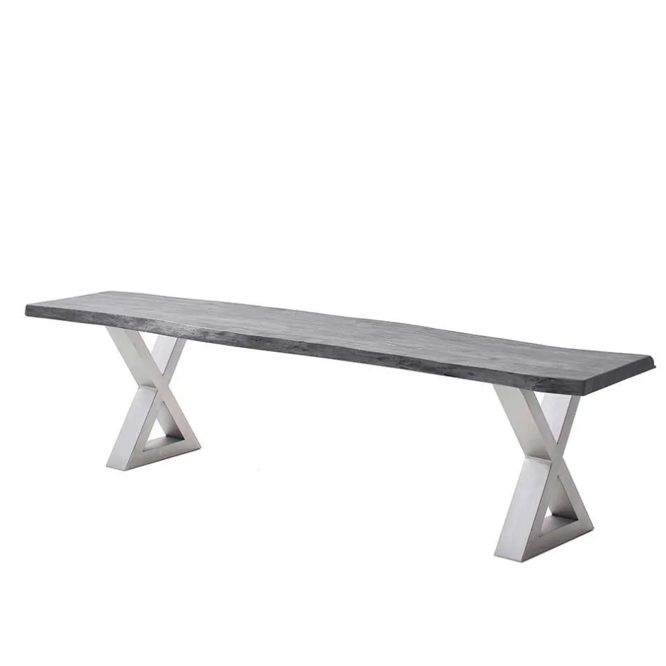 - Die Sitzbank in Akazie Grau und Edelstahlfarben ist ideal für den Industry und Loft Stil