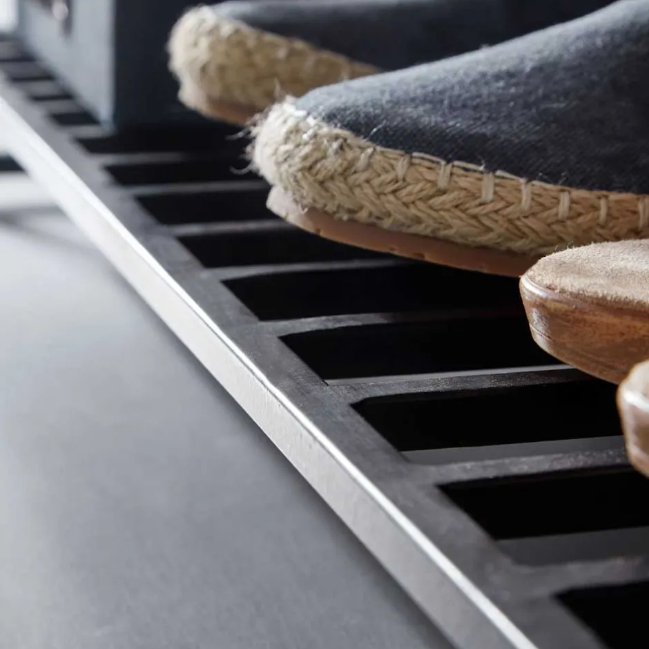 - Attraktive Garderobenbank in Mangoholz Naturfarben und Schwarz