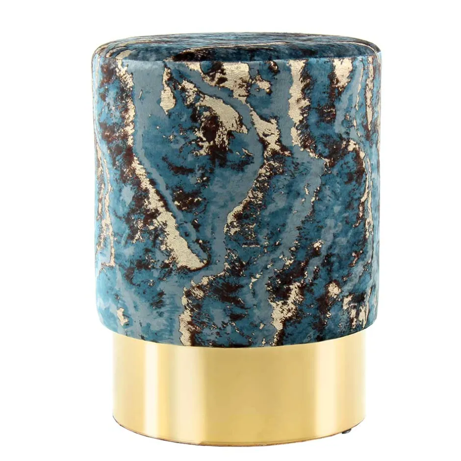 - Design Polsterhocker in Dunkelblau und Goldfarben