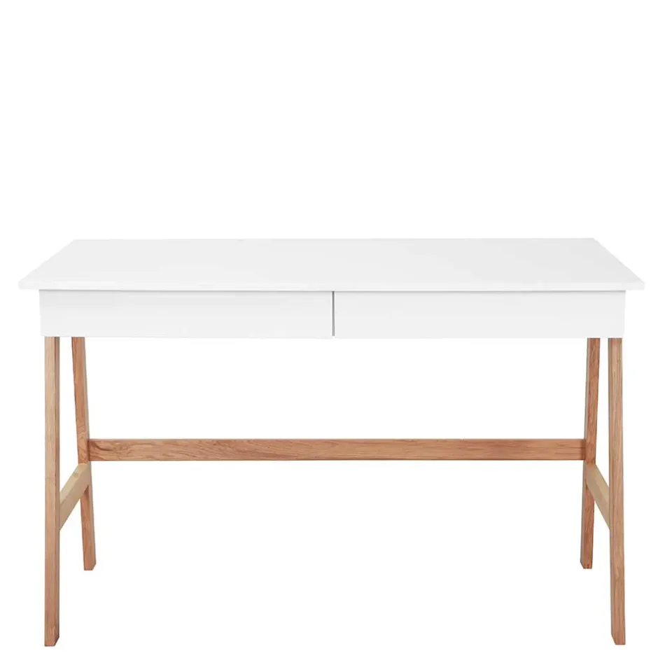 - Kompakter Schreibtisch in Weiß und Holz Naturfarben