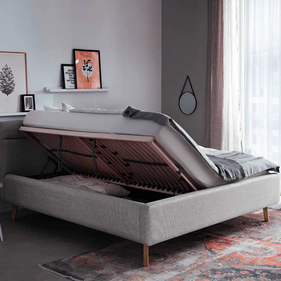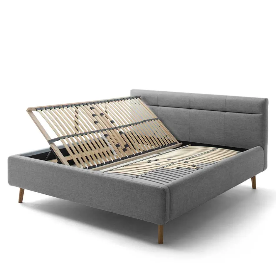- Attraktives Polsterbett in Grau und Eichefarben
