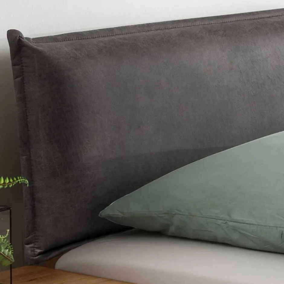 - Schaumstoffgepolstertes Kopfteil in Kissenoptik, Bezug aus Recyclingleder (70 % Leder, 30 % Polyester) in Anthrazit