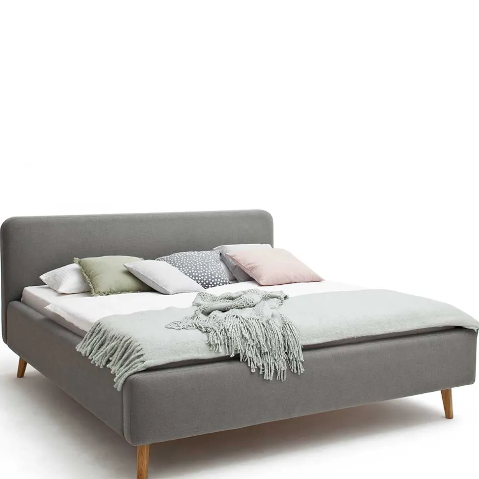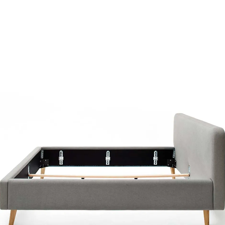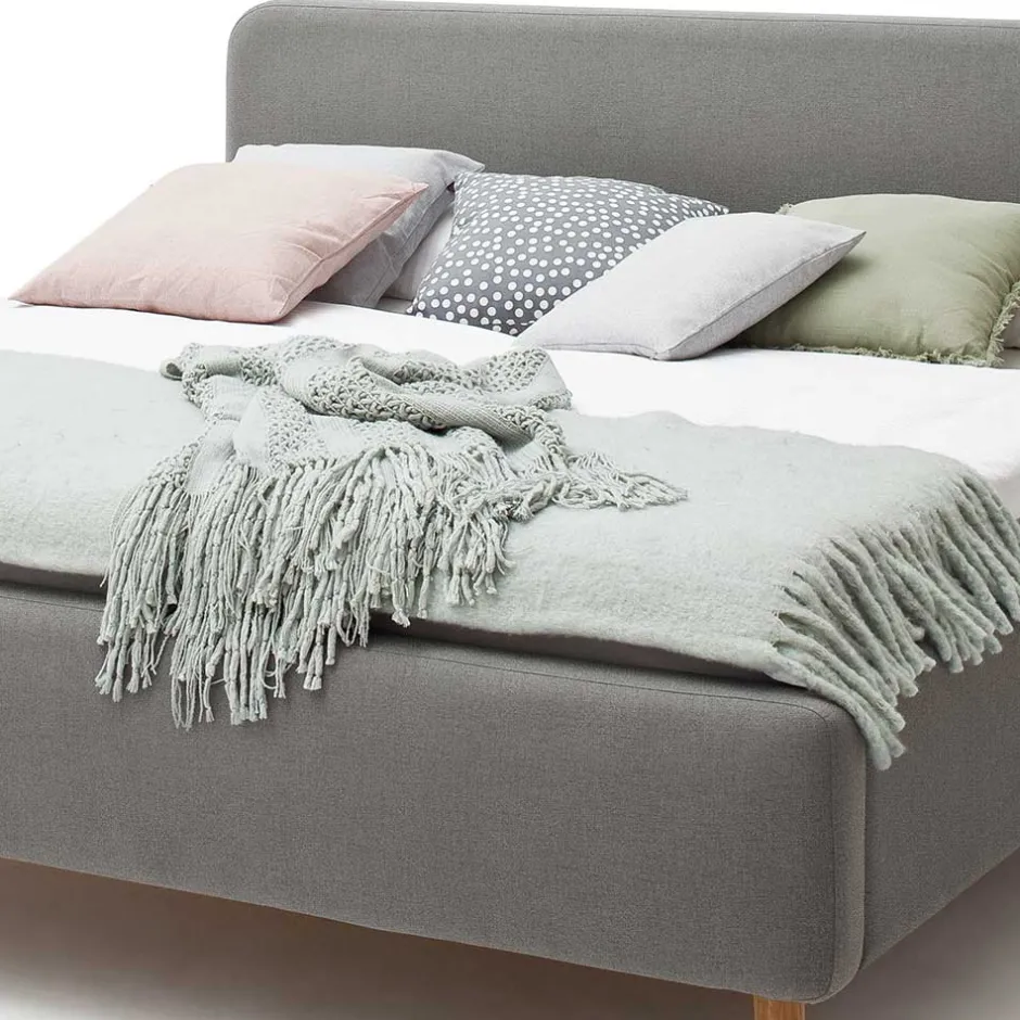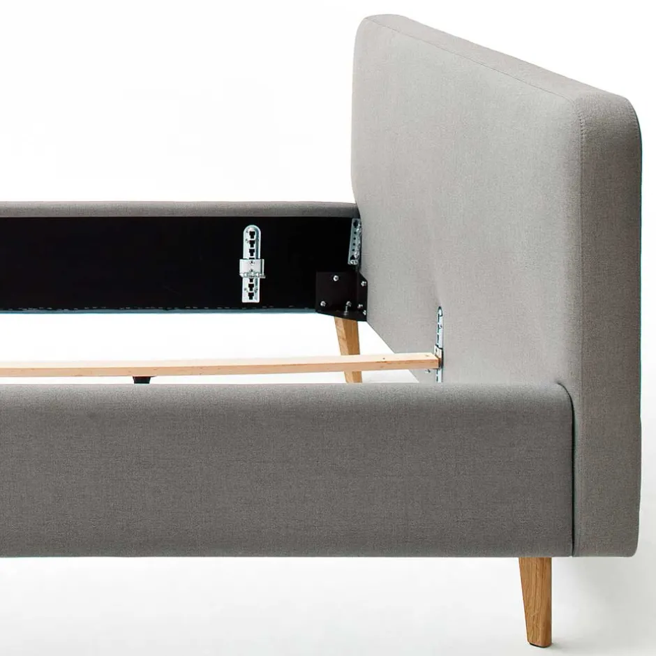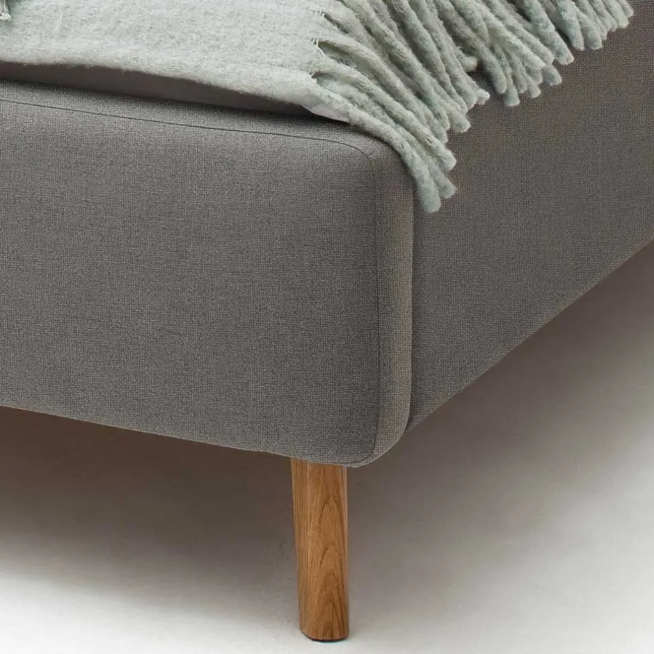 - Elegantes Polsterbett in Hellgrau und Eichefarben