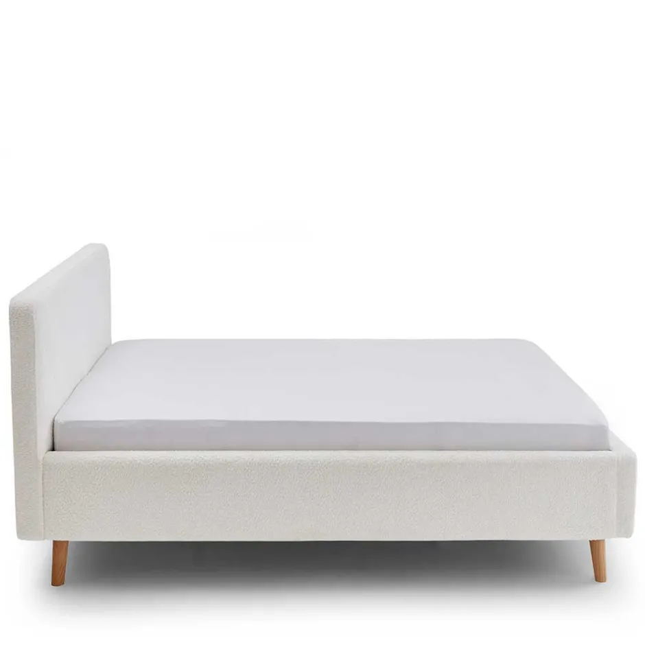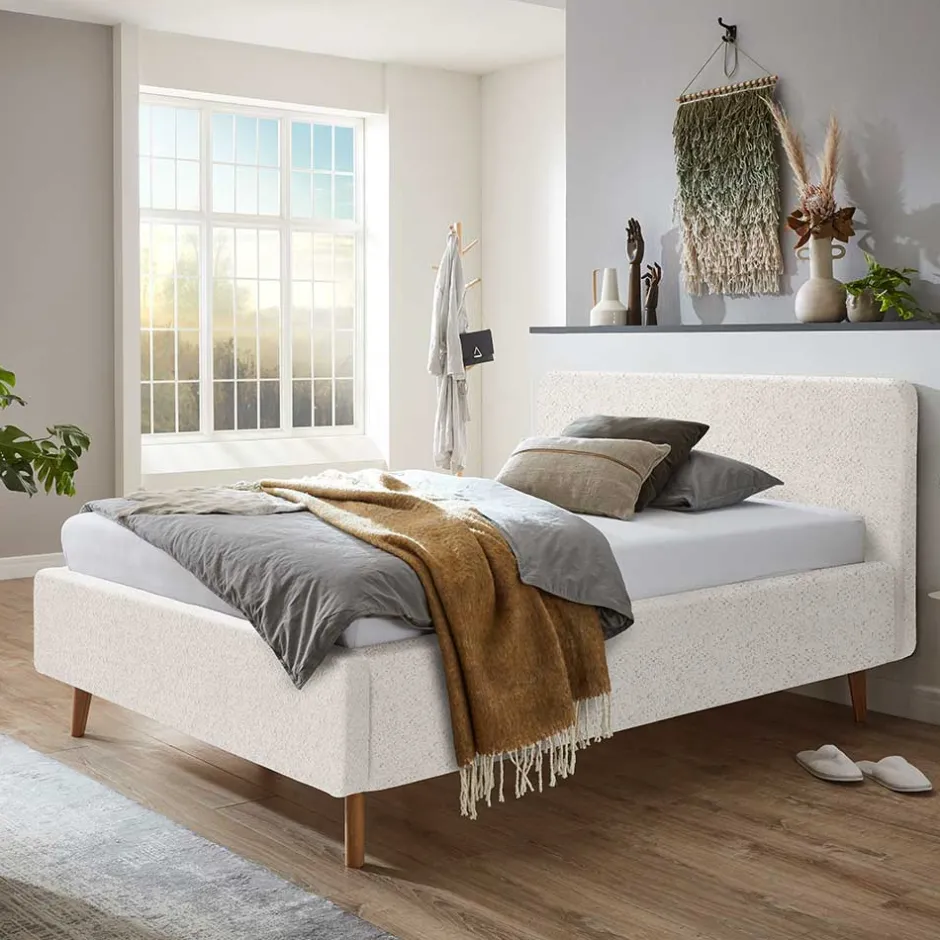 - Trendiges Polsterbett in Cremeweiß und Eichefarben