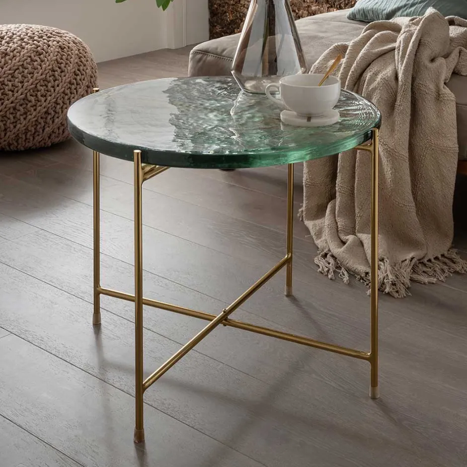 - Handgefertigte, 2 cm starke Strukturglas-Tischplatte (ESG)