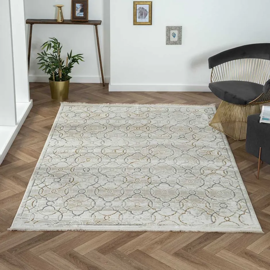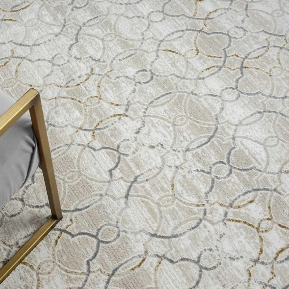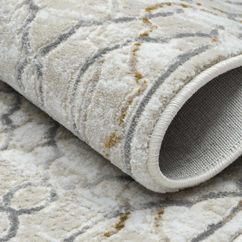 - Wohnlicher Teppich in Hellgrau und Cremefarben