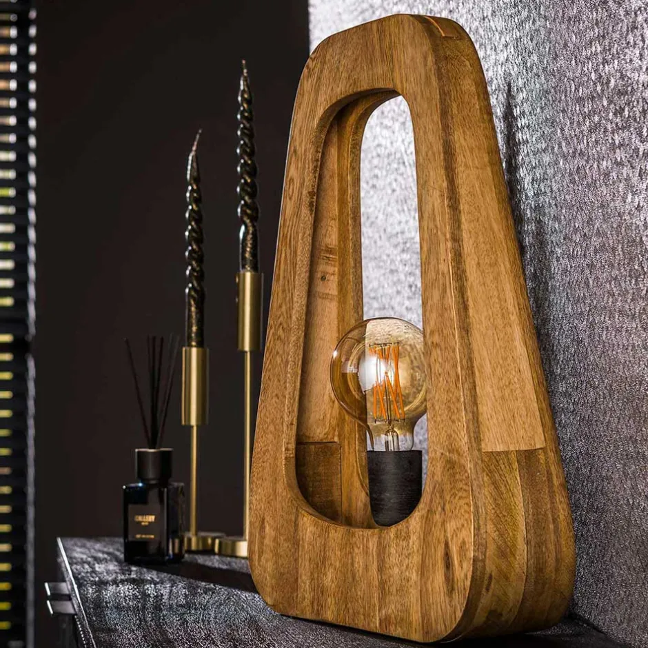 - Originelle Tischleuchte in Mangoholz Naturfarben