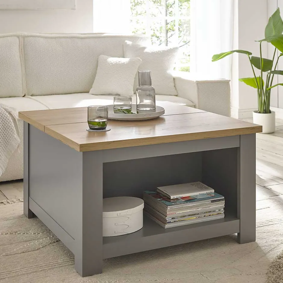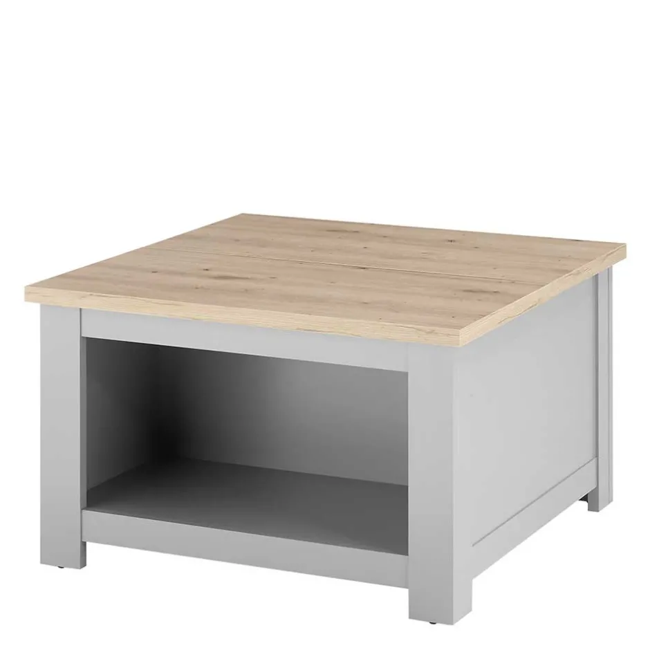 - Trendstarker Couchtisch in Lichtgrau und Eichefarben