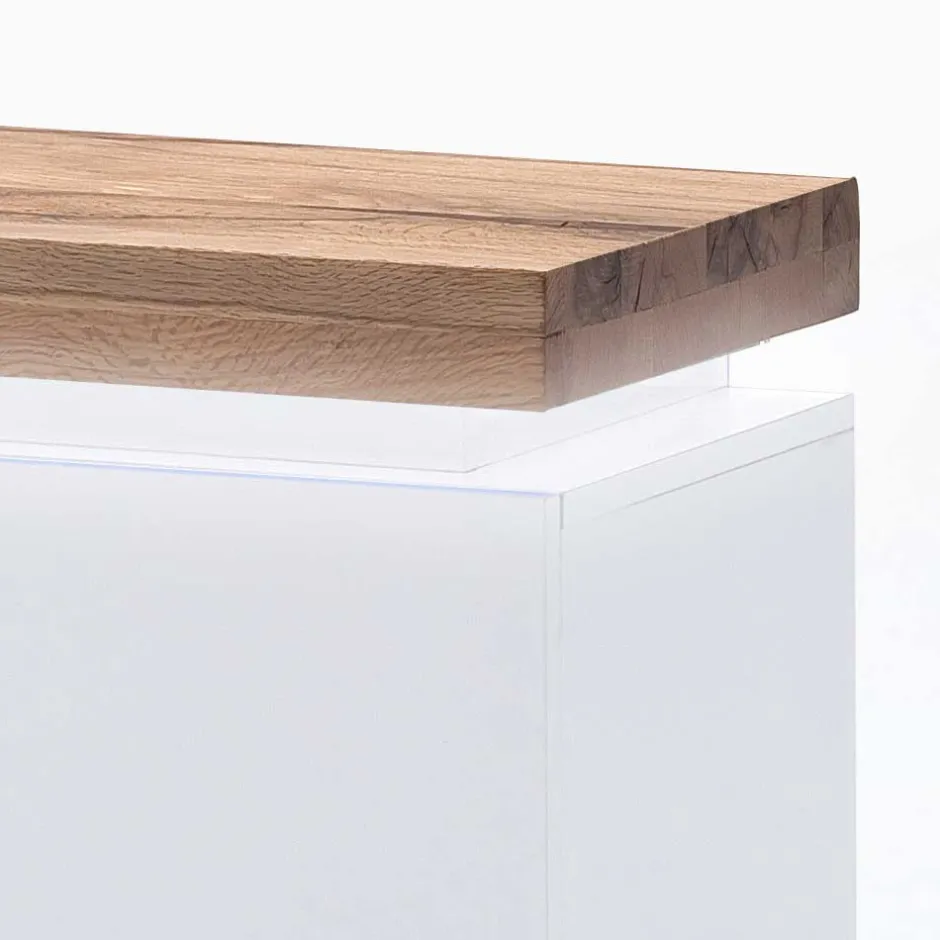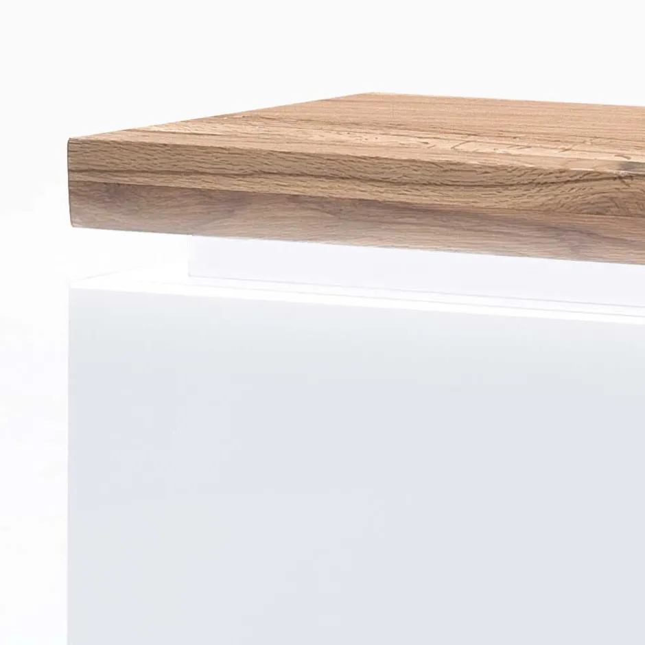 - Korpus matt weiß lackiert, Oberplatte geölt