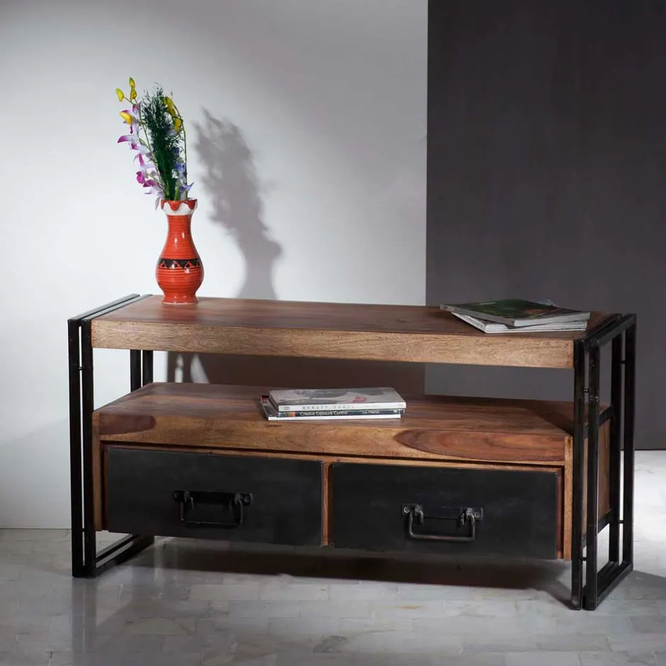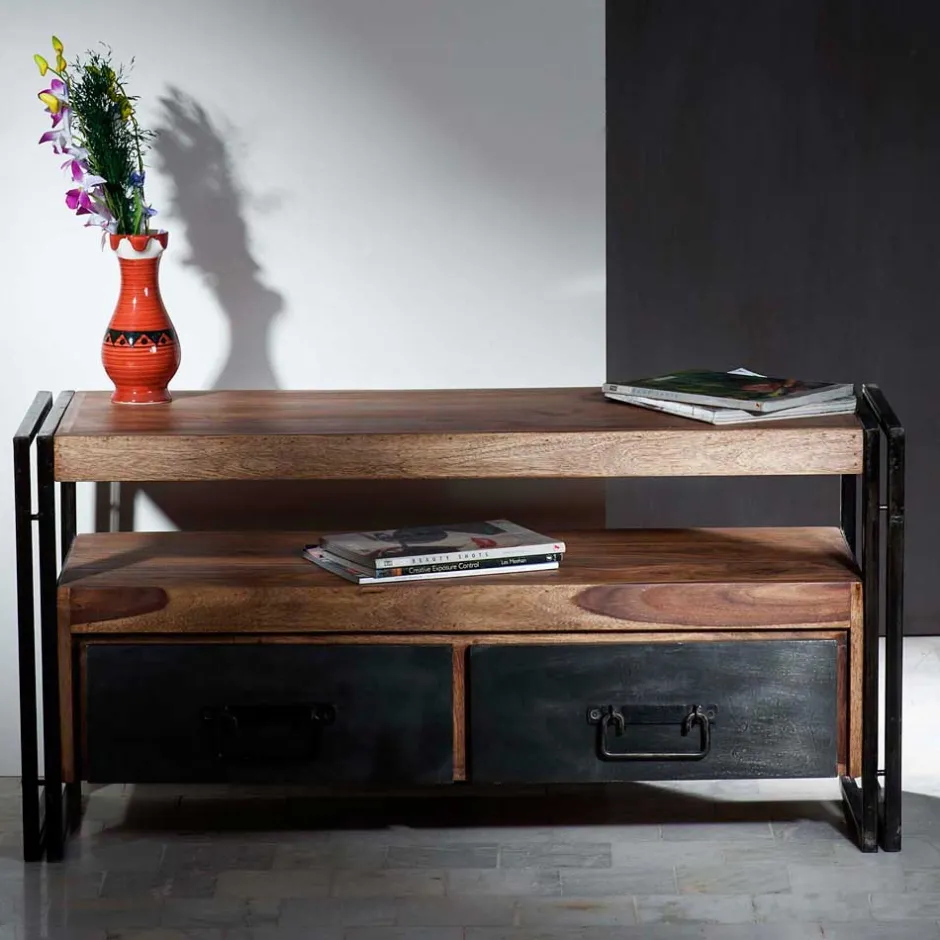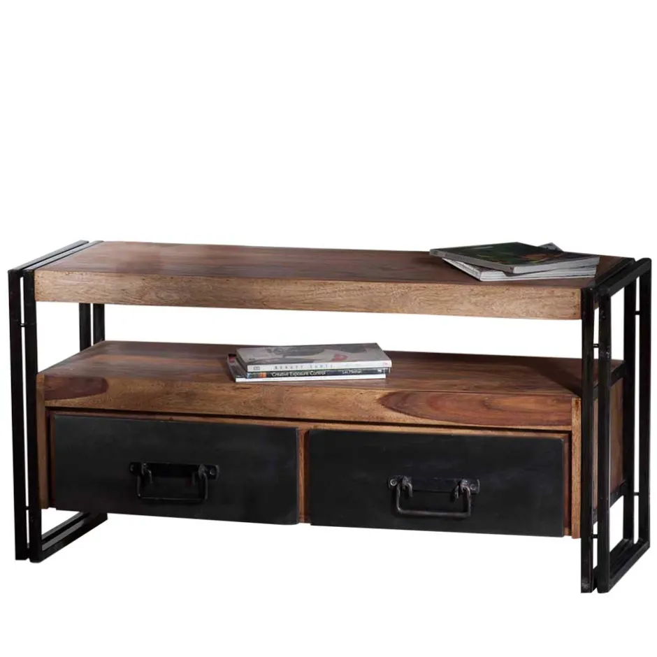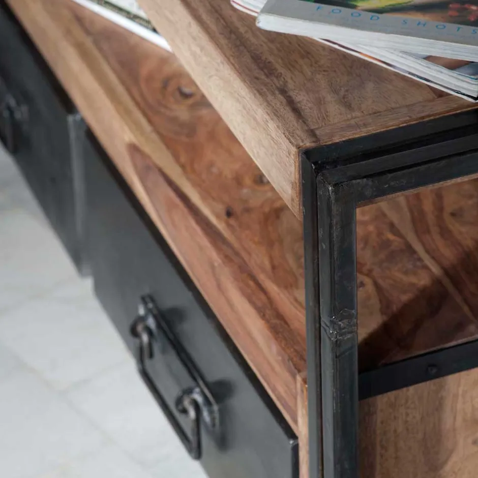 - Beeidnruckendes Lowboard in Akaziefarben und Schwarz