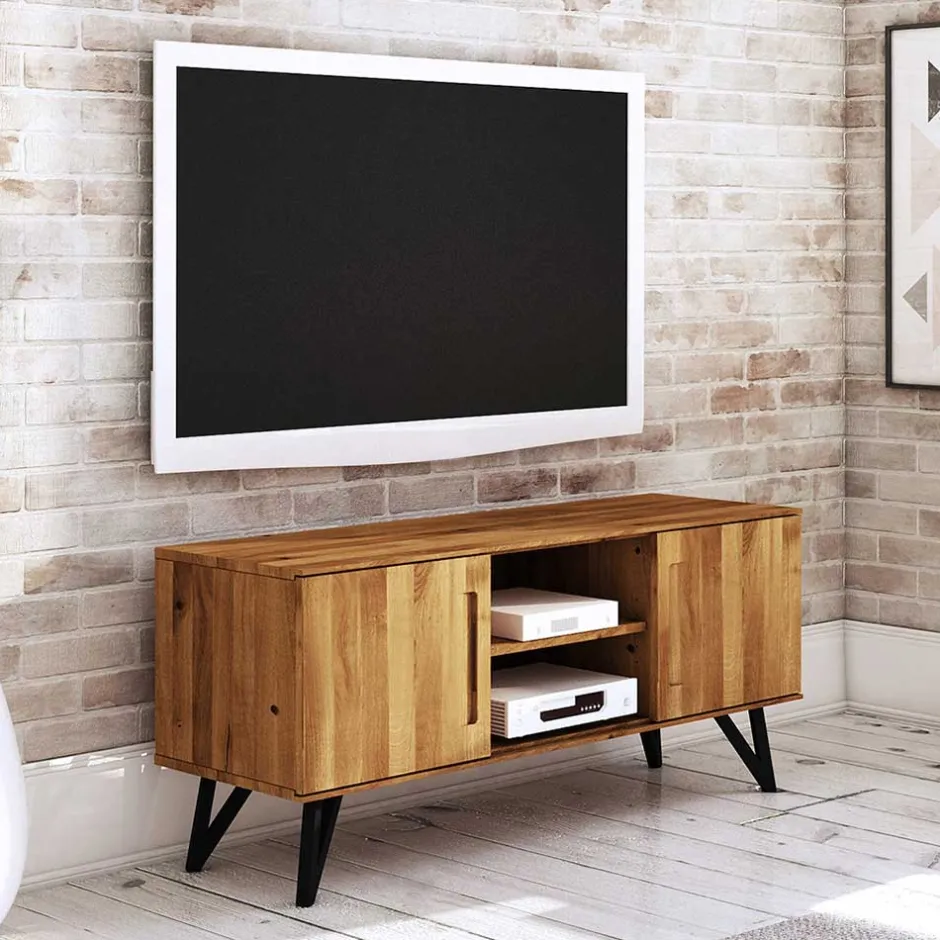 - Dekoratives TV-Board in Wildeichefarben und Schwarz
