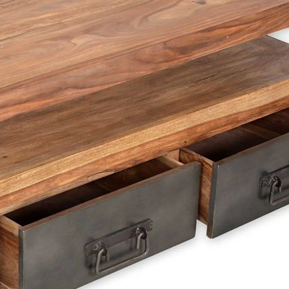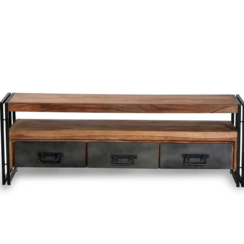 - Drei integrierte Schubladen mit Metallfronten auf Holzauszug