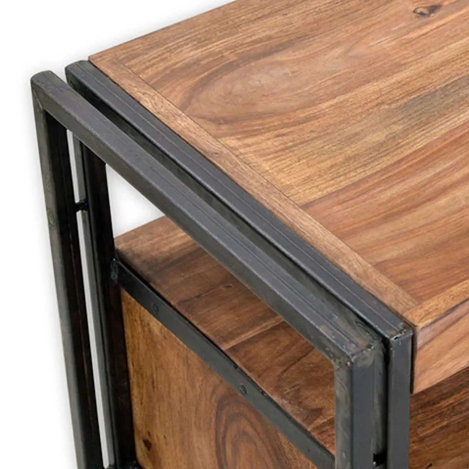 - Klasse Lowboard in Akaziefarben und Schwarz