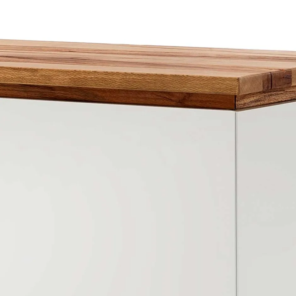 - Oberfläche in Weiß matt lackiert, Oberboden und Sockel aus massiver, geölter Asteiche