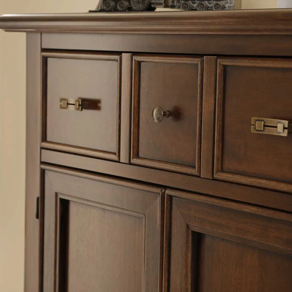 - Messingfarbige Metall-Knopfgriffe und Griffleisten