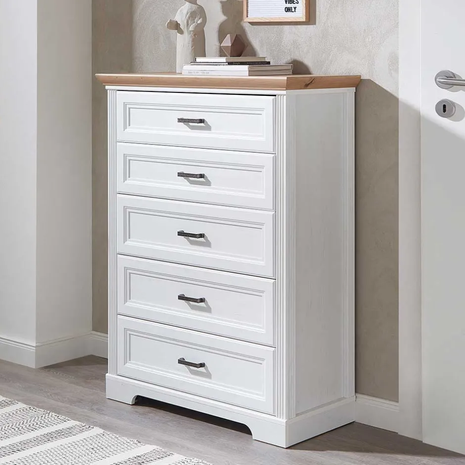 - Vielseitige Kommode in Pinie Weiß und Eichefarben
