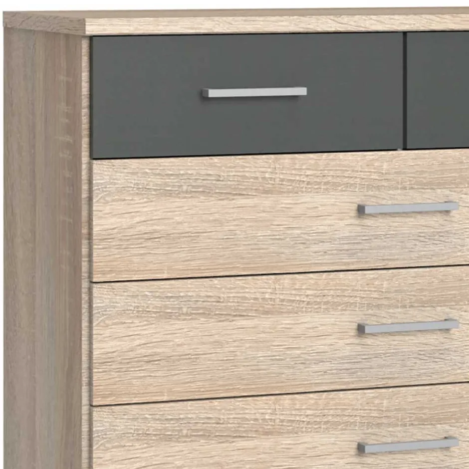 - Zeitlose Kommode in Eiche Sägerau und Dunkelgrau
